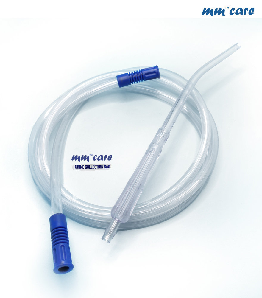 The MM Care™ Yankauer Suction Set is a sterile, single-use device used for efficient suctioning of blood, secretions, and fluids during surgical and medical procedures. It features a rigid Yankauer handle—available in Crown Tip or Straight Tip—with a built-in thumb vent control for precise suction regulation. The handle is pre-connected to flexible, transparent suction tubing, ready for immediate use in operating rooms, ICUs, and emergency care.